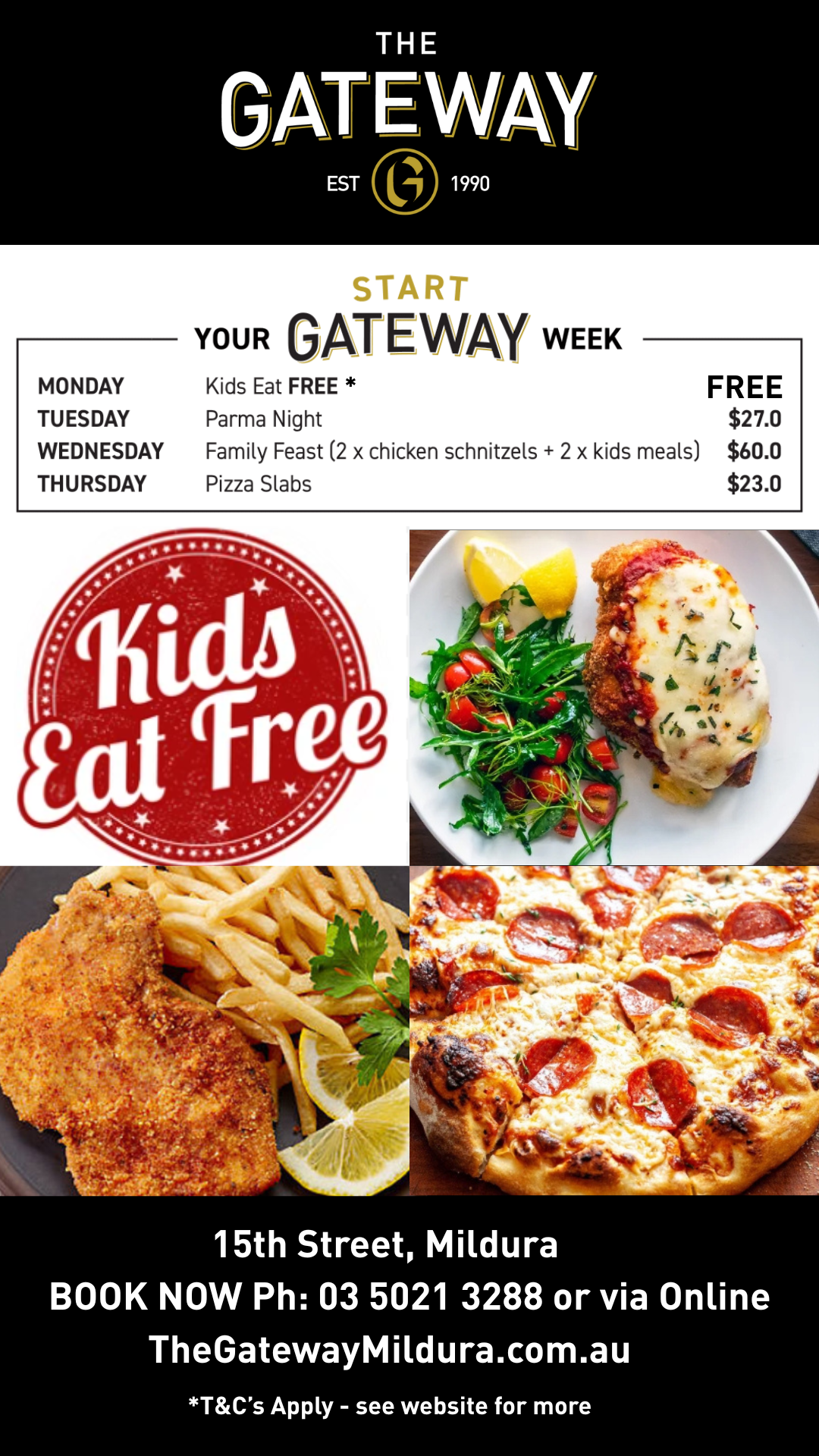 The Mildura Gateway is a popular family venue, with a generous community spirit and a warm welcome. Our family restaurant serves a fantastic selection of mouth-watering meals available for both lunch and dinner every day.