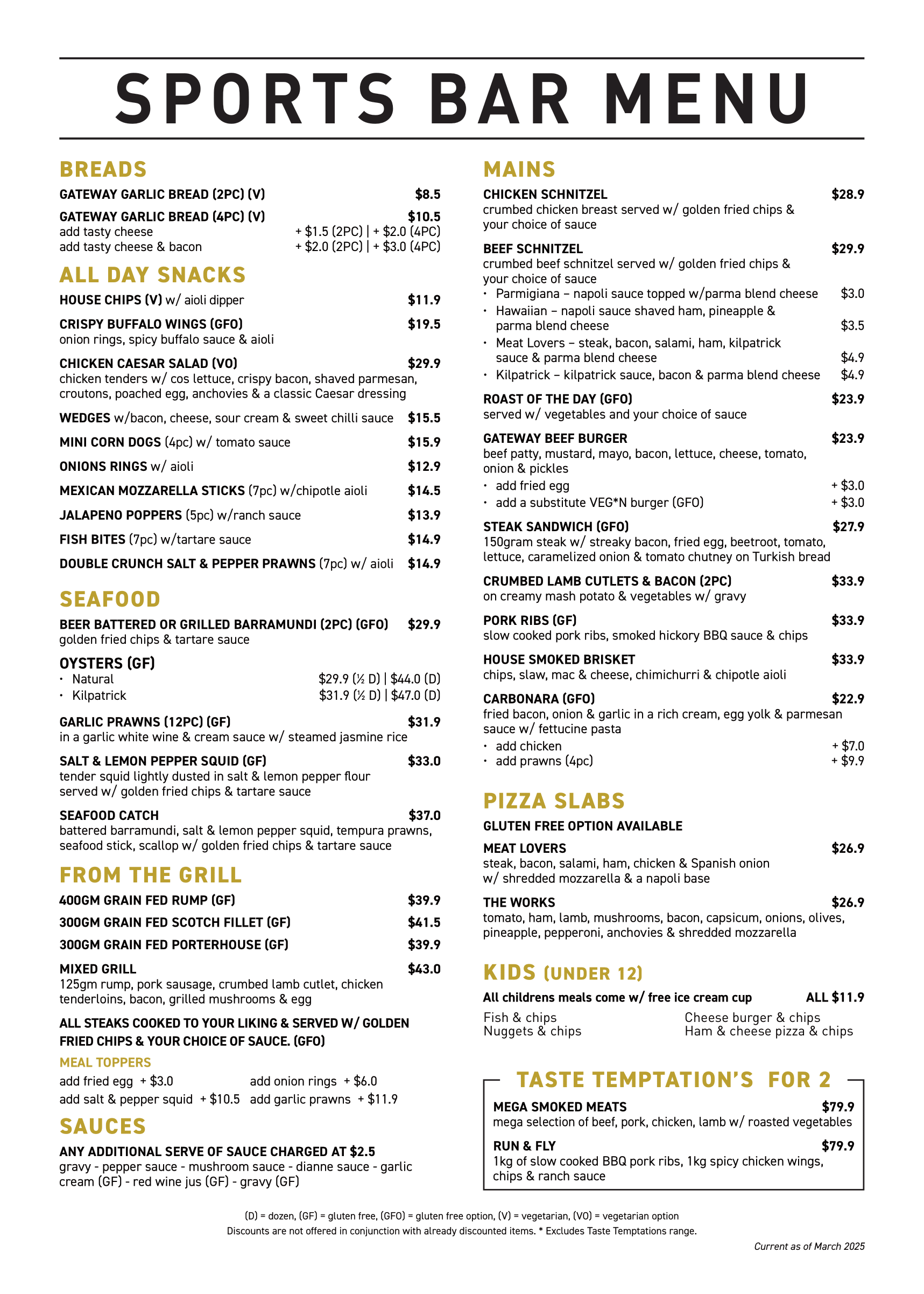 The venue in Mildura that is fondly referred to by many as ‘their local’, The Club Bar at The Gateway is a great meeting place to kick back and relax with friends and family. It’s where the beer is cold, the food is tasty, and the atmosphere is friendly. Delight in our all-day dining options available from 11 am to 9 pm, featuring an enticing sports bar menu that will leave you craving for more.